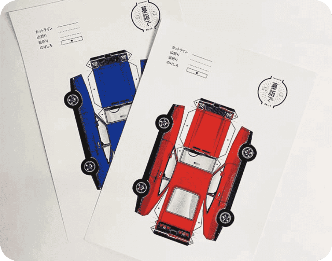 ペーパークラフトワークショップは、精霊馬ならぬ精霊スポーツカーを組み立てて吊るして楽しむことができるワークショップです。