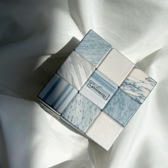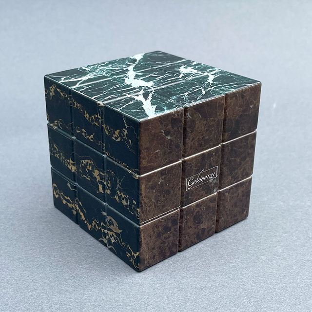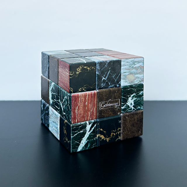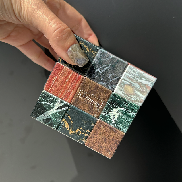 石材キューブパズルの新たな進化形!王道の大理石6種がプリントされた、少しエレガントなキューブパズルです。「石材かるた」 を楽しんでくれたお客様のアイデアから生まれた、まさに“石好き”のためのマニアックな逸品。従来の人気シリーズに、大理石の持つ気品をプラスしました。パズルとして挑戦するのはもちろん、高級感あふれる石目デザインはお部屋のオブジェにも最適。スムーズな回転と緻密なプリントにもこだわり、ギフトにもぴったりの仕上がりです。頭の体操、ちょっとした暇つぶし、石好きの心をくすぐる一品…おひとつ、いかがですか?