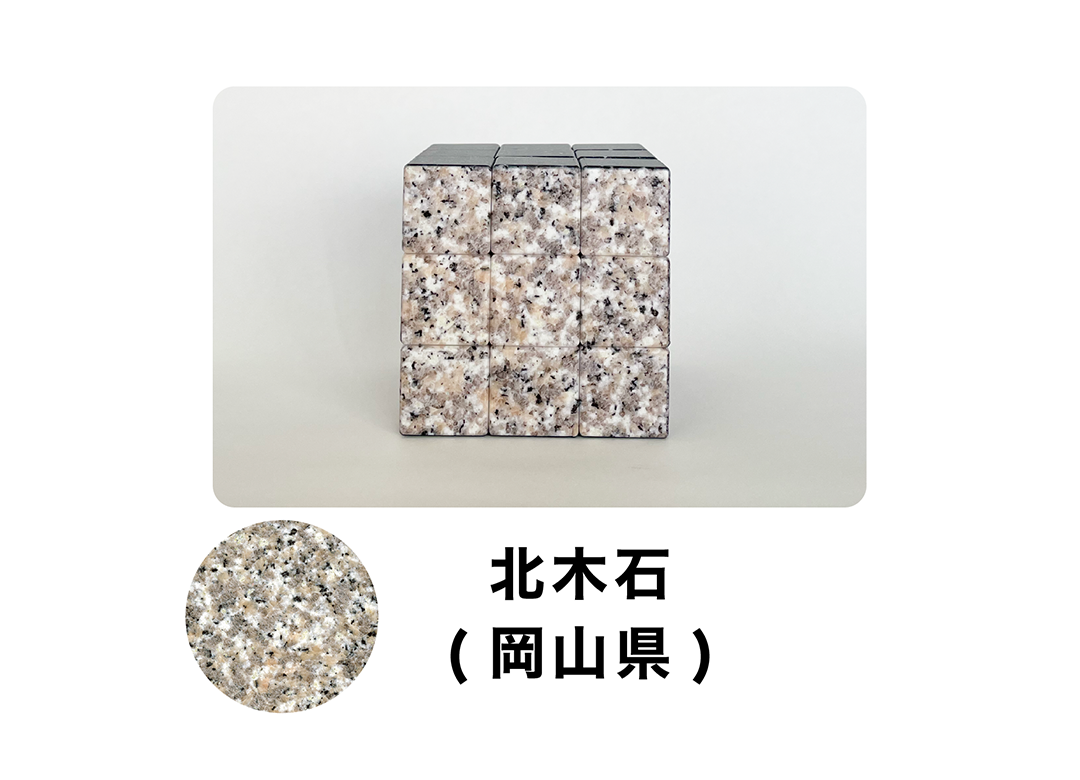 庵治石細目(香川県)/稲田石(茨城県)/浮金石(福島県)/北木石(岡山県)/滝根みかげ石(福島県)/備中青みかげ(岡山県)